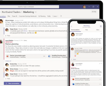 Microsoft Teams facilitates cross-platform document management and secure cloud file storage, so users can share, access and co-author files with team members without leaving Microsoft Teams.