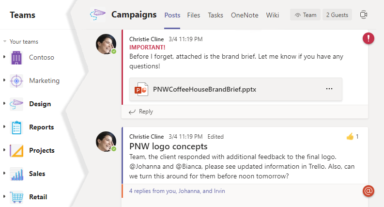 External users can have collaboration capabilities such as creating and replying to posts in the channel, using @mentions to directly reach people, share documents and more.
