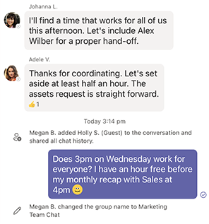 You can add external people to your teams, so they can participate in channel conversations with your team members.