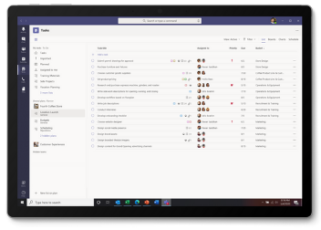 Use apps in Microsoft Teams such as Tasks to delegate and track collaborative work from a high level down to granular detail.